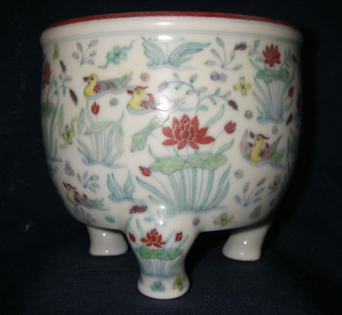 明 成化:豆彩口沿醬色香爐