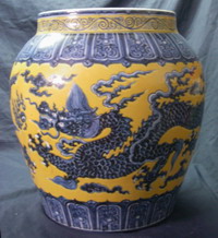 明 (無款):黃地青花龍紋大罐