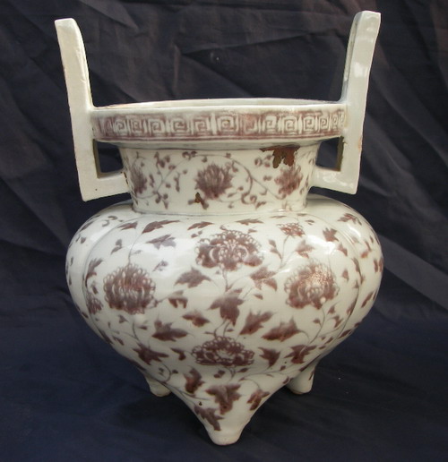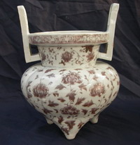 明 洪武:釉裡紅鬲形雙耳爐