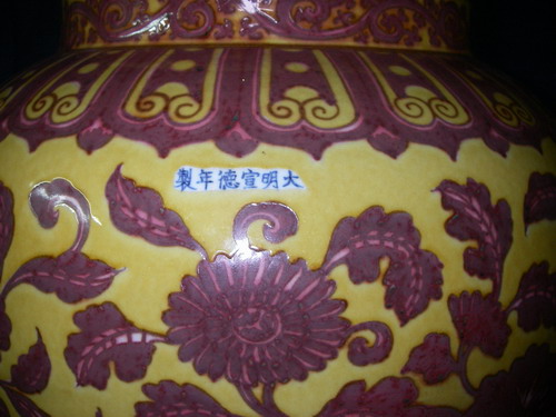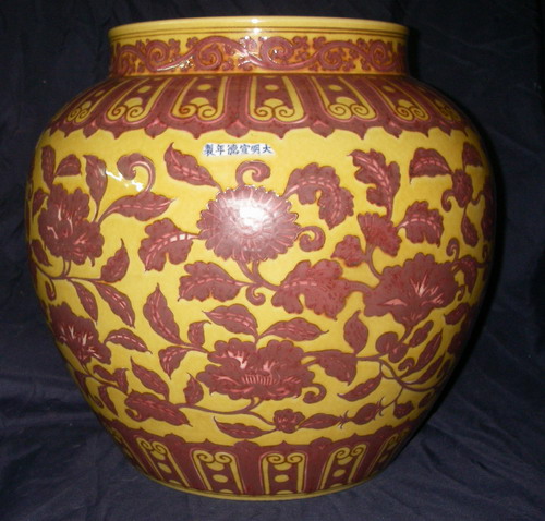 明 宣德:黃地釉裡紅罐