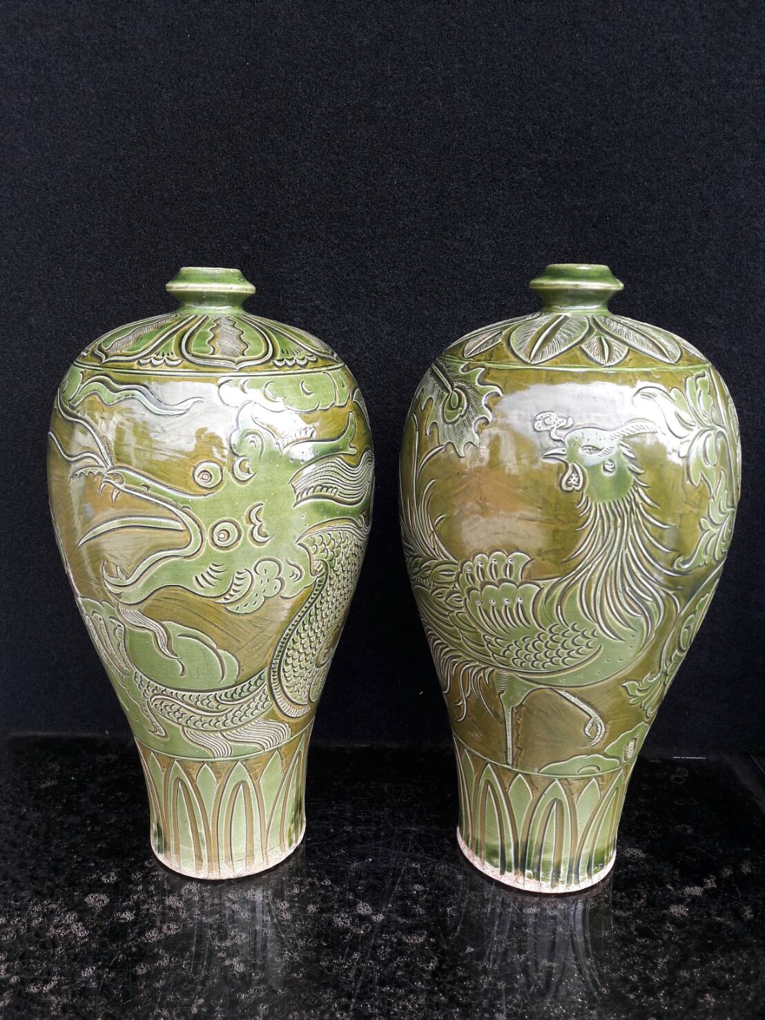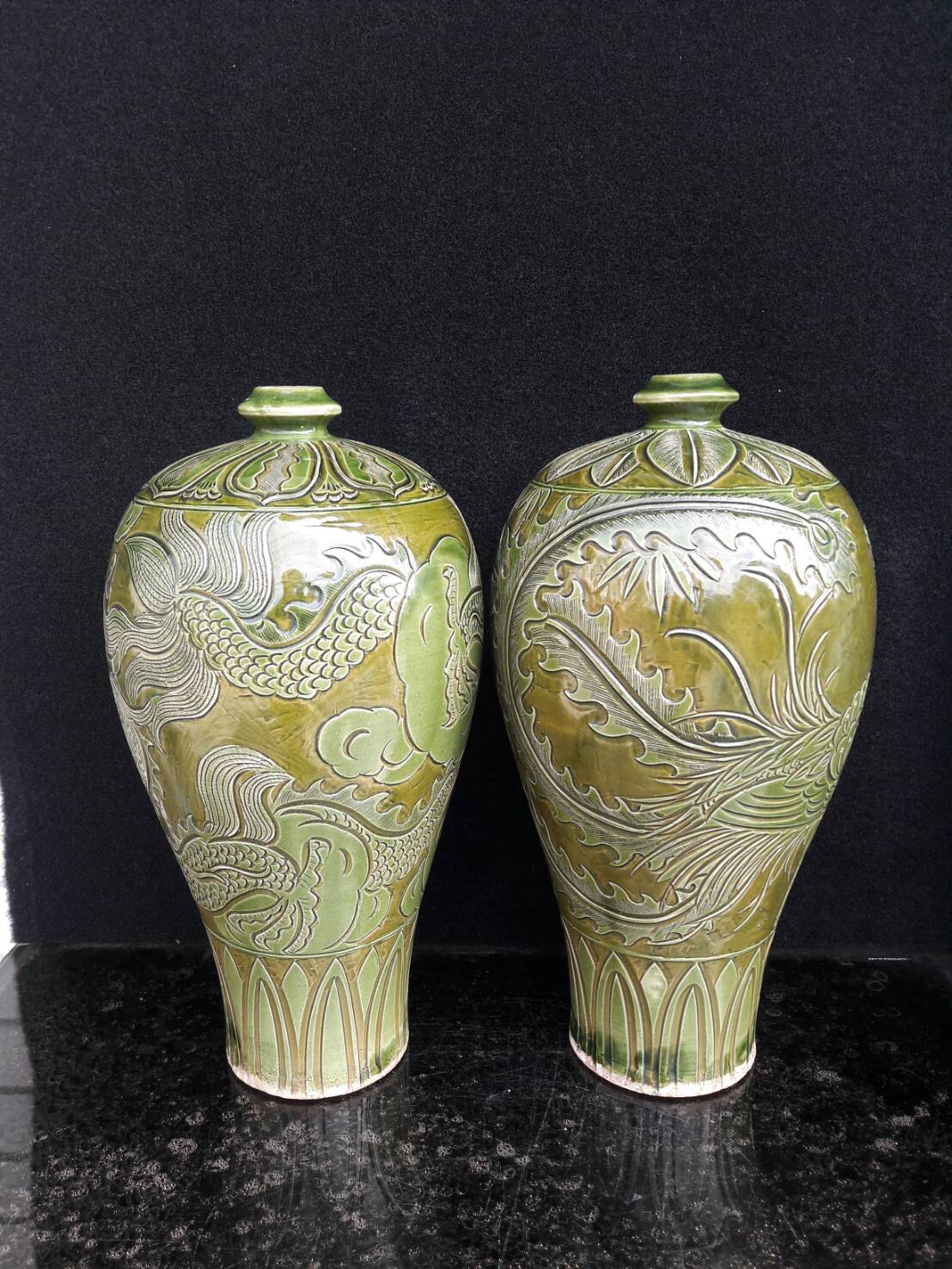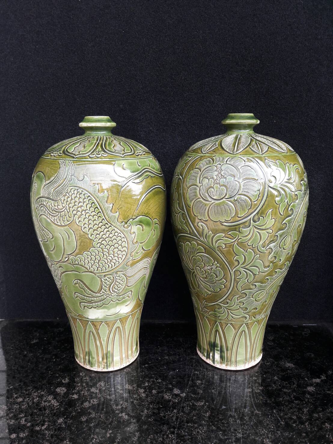 北宋:耀洲窯刻剔花龍鳳梅瓶