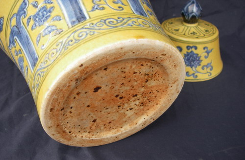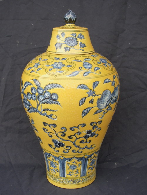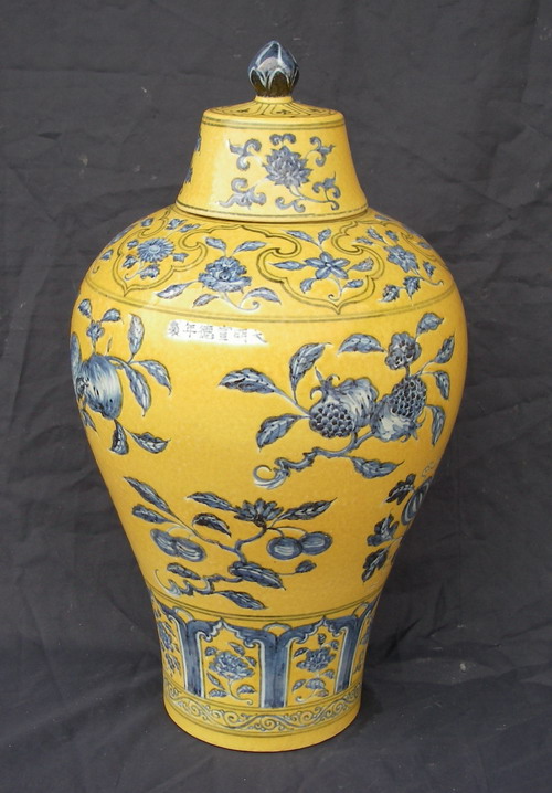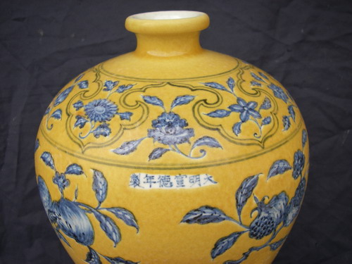明 宣德:黃地青花梅瓶