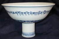 明 宣德:外青花梵紋內針刻梵紋及針刻款高足碗