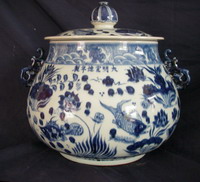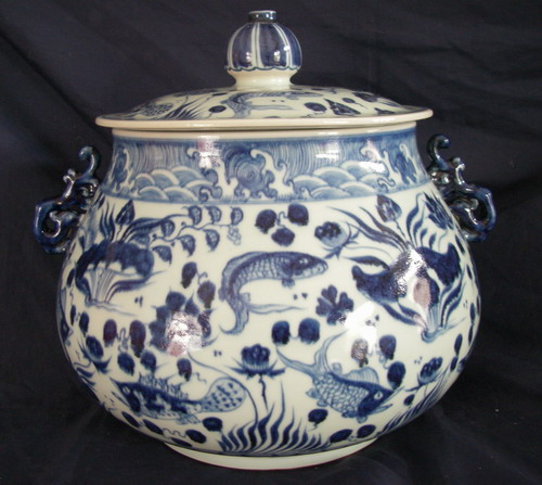 明 宣德:青花魚藻紋蓋罐